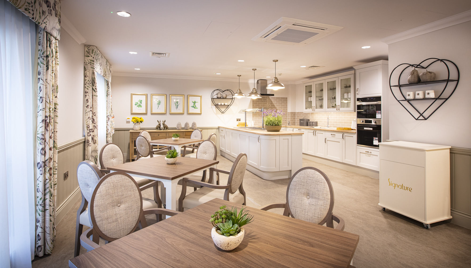 Signature at Farnham Common offers fine dining for all its residents, with nutritionally balanced dishes created using locally sourced ingredients and prepared by its team of on-site chefs.